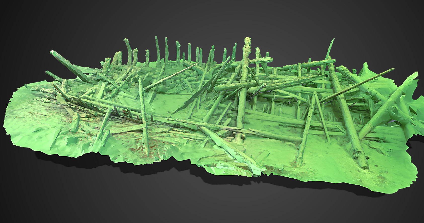 In addition to the six wrecks, various installations were found: a pile of stones in the form of a pyramid with an adjacent wooden structure, and piles and wooden structures used during ship sinking.