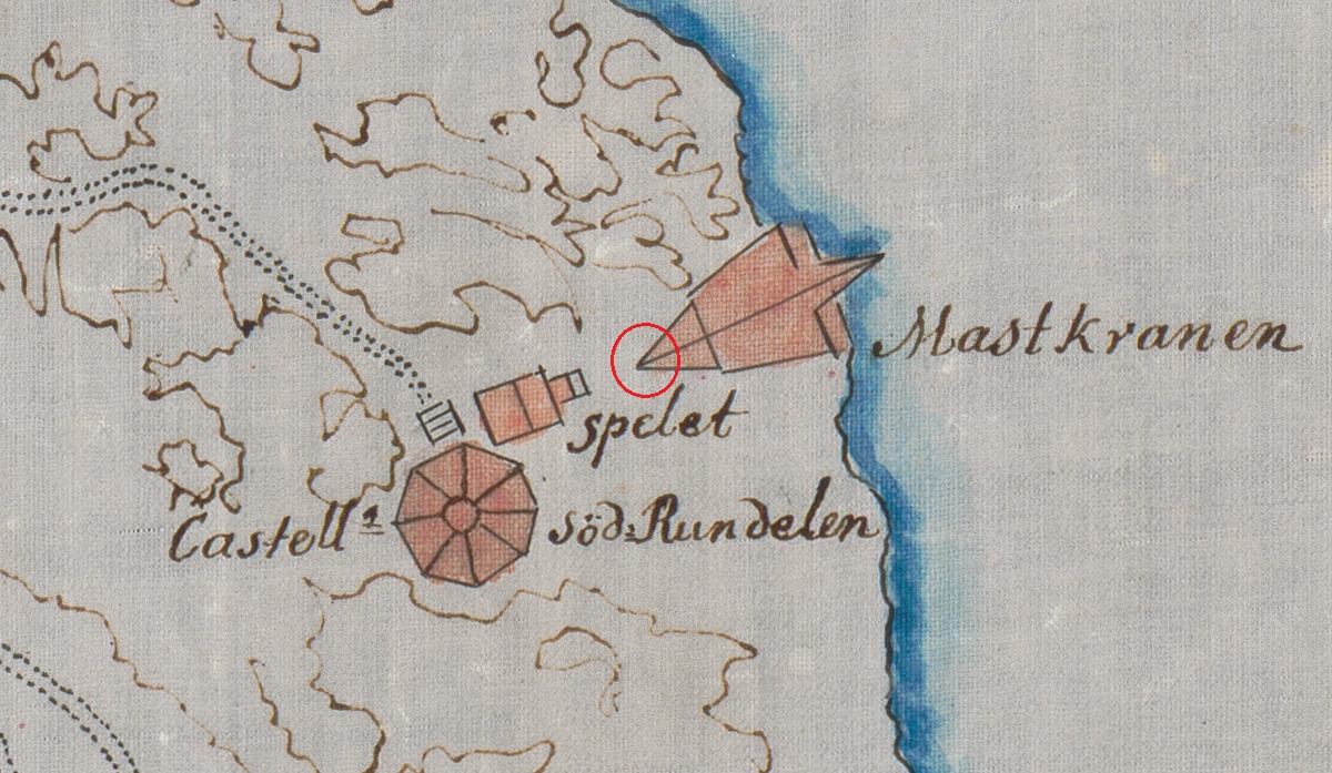 Den stora kranen byggdes på 1660-talet och den användes för att masta på och av flottans örlogsfartyg. Under en pågående undersökning på Kastellholmen i Stockholm lyckades marinarkeologerna från Vrak att lokalisera tydliga lämningar efter den historiska mastkranen. Upptäckten gjordes i samband med renoveringsarbeten av en väg kring ett mindre tegelhus från 1916 som står på ön.