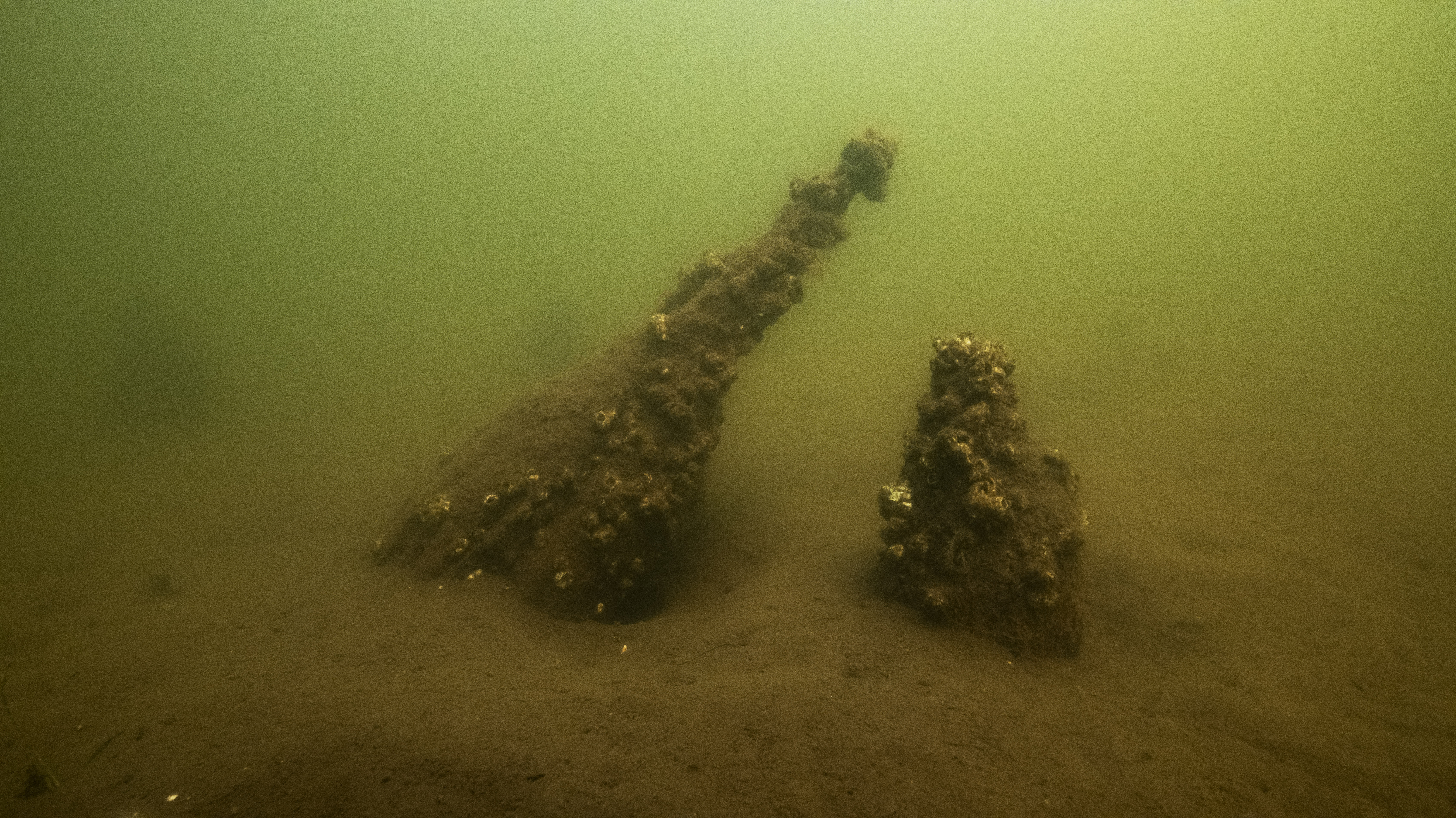 När marinarkeologerna letade efter ett vrak mellan öarna Verkö och Länsman gick deras puls upp. Helt plötsligt syntes en skog av kraftigt eroderade pålar!