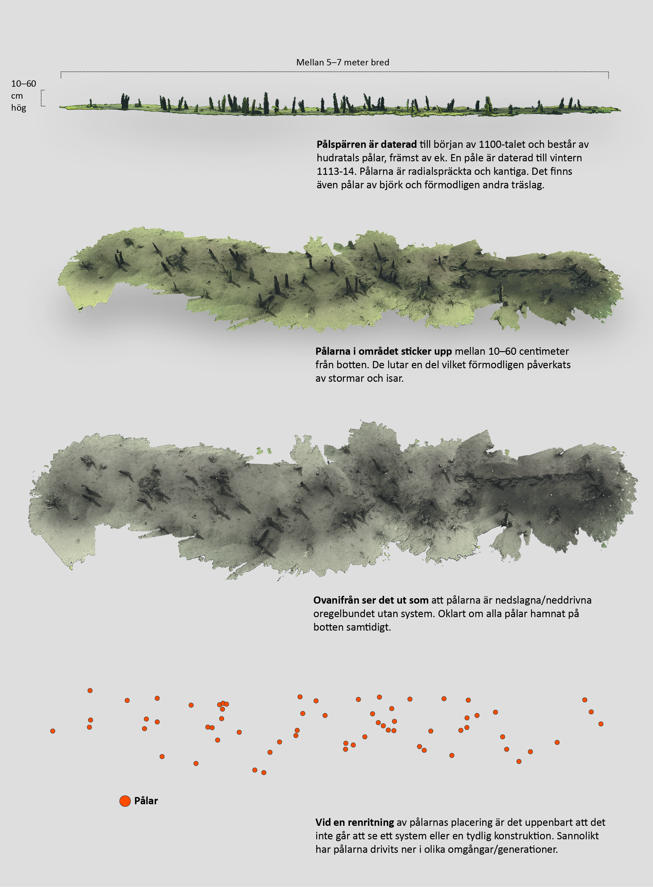 – Det är alltså tusentals pålar som spärrat av sunden in mot Lyckeby. Att de anlagt så stora och omfattande anläggningar visar på områdets betydelse. Man kan anta att det varit verksamhet där redan från slutet av vikingatiden! Kanske var det järnexporten de ville skydda? Eller var det skydd mot piratanfall? funderar Jim Hansson.