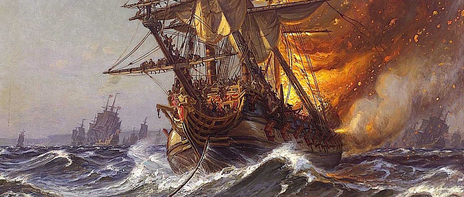 I början av oktober 1710 drabbade svenska och danska örlogsfartyg samman i Köge bukt strax söder om Köpenhamn. Under striderna exploderade det danska fartyget Dannebroge, en gång den danska flottans förnämsta fartyg.