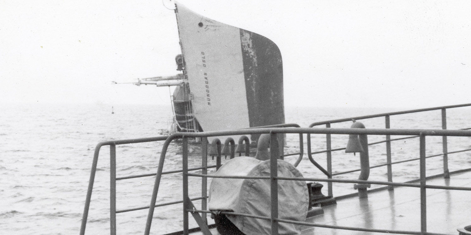 För besättningen kändes det tre år gamla fartyget nytt och säkert, men i den täta dimman blev stämningen ombord spänd. När fartyget kommit strax norr om Grundkallen dök plötsligt det finska fartyget Saara ut ur dimman och träffade Mundogas på styrbordssidan, med omfattande skador som följd. Hon fick nästan omedelbart slagsida. Saara fick stora skador i fören.